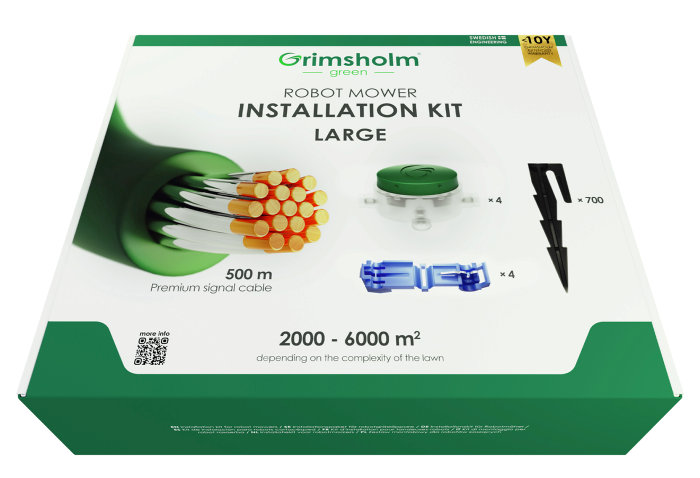 Genom att använda Grimsholm Green´s installationspaket för robotgräsklippare kan du känna dig trygg med att få en driftsäker installation som håller i många år. Kabeln i installationspaketen är alltid en premium-kabel som är tillverkad av kopparkärna med förtenning samt PE-isolering.