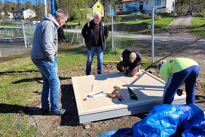 05. december 2024Idrottsklubben Håfreströms IF närmade sig årets fotbollssäsong med en fallfärdig entré- och biljettbod. Med det sponsrade materialet kunde klubben bygga en ny biljettbod, med ett litet tak för regnskydd ovanför biljettluckan. Den nya faluröda boden blir en säkrare plats för medlemmar att bedriva biljettförsäljning i, samtidigt som den ger ett trevligare första intryck av hela idrottsplatsen för såväl medlemmar som besökare. Medlemmarna byggde boden tillsammans, med stor hjälp av klubbens byggkunniga deltagare.