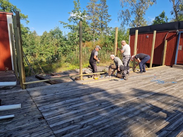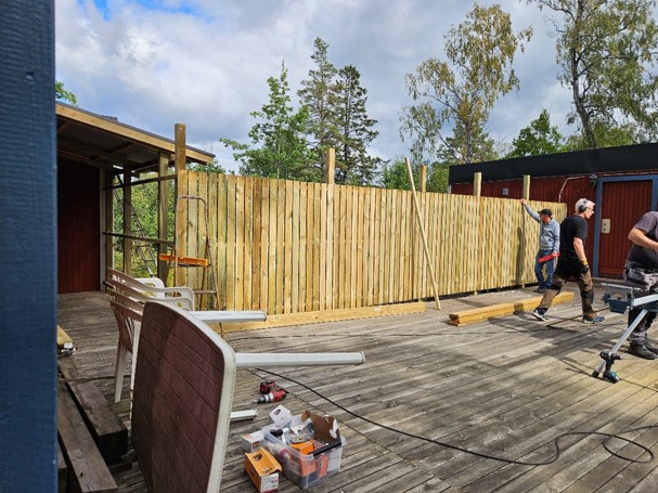18. juli 2024Oxelösunds Brukshundsklubb älskar verkligen hundar. Här kan du bl.a. gå kurser, träna 'nosework', agility, vardags- och tävlingslydnad, samt fika och prata hund med likasinnade. Efter att ett gammalt förråd som låg intill klubbens altan behövt rivas, saknade de en bit staket/vindskydd på platsen. De behövde material för att kunna bygga upp ett nytt staket som inhägnad, så att alla kan använda platsen igen. Arbetet utfördes av medlemmar inom klubben.