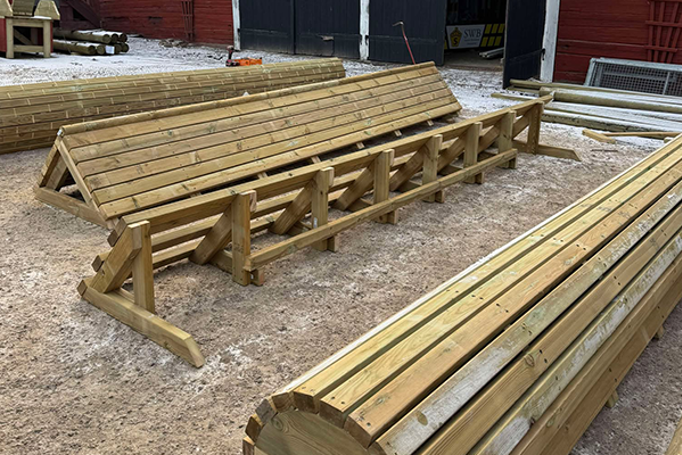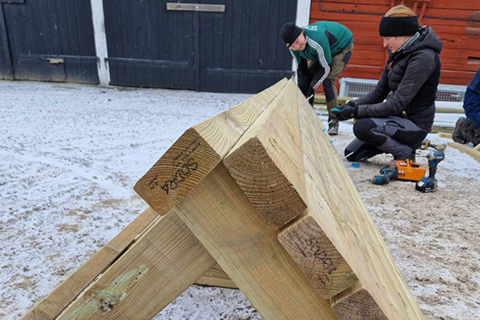 03. januari 2025Föreningen Mantorpsryttarna i Östergötland arrangerar bl.a. tävlingar inom fälttävlan, inom vilket det ingår ett terrängprov där häst och ryttare tar sig runt en bana i kuperad terräng med fasta hinder. Föreningens befintliga bana har funnits i årtionden, och omfattade tidigare ca. 100 hinder i höjd runt 70 - 110 cm. Med det sponsrade materialet kunde de bygga flera nya hinder i höjden 50-60 cm, vilket lät dem bjuda in fler barn och ungdomar att våga testa sporten. I föreningen finns medlemmar med snickarkompetens, såväl som utbildade banbyggare och hinderbyggare, som tillsammans med andra medlemmar kunde hjälpas åt att bygga säkra hinder.